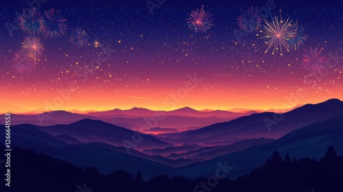 Fototapeta premium Colorful Fireworks Over Serene Mountain Landscape
