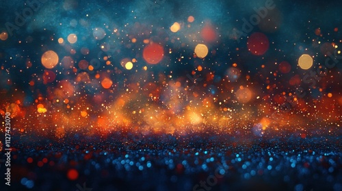 Fototapeta premium Colorful fireworks over sparkling blue bokeh