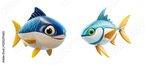 © Khairil, Fototapeta premium Colorful Fish Characters on Transparent Background
