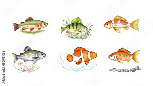 © Ahingska, Naklejka premium Colorful Fish Illustrations Aquatic Life Marine Animals Underwater World