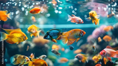 © Ali, Naklejka premium Colorful fish in the glass of front focus