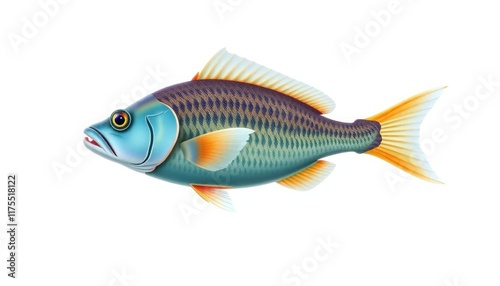 © awan toklo, Fototapeta premium Colorful fish, ocean life, aquatic, isolated, white background, illustration, seafood
