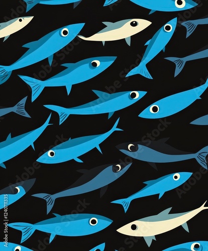 Obraz premium Colorful Fish Pattern on Dark Background for Creative Projects