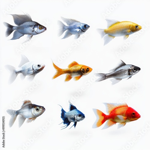 © khonkangrua, Fototapeta premium Colorful Fish Species on White Background