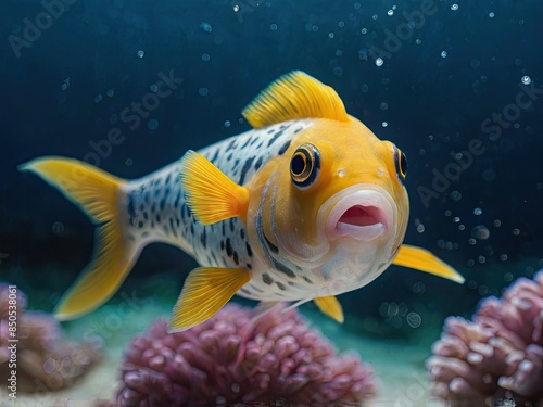 Naklejka premium Colorful fish swim in a tank filled with aquatic plants