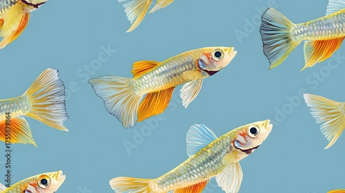 © Benjarin, Naklejka premium Colorful Fish Swimming Gracefully in a Serene Aquatic Background