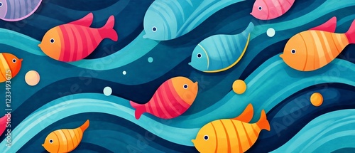 Naklejka premium Colorful fish swimming in a vibrant ocean scene.