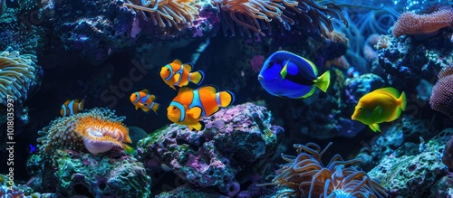 Fototapeta premium Colorful Fish Swimming in an Anemone