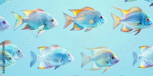 Fototapeta premium Colorful fish swimming in clear blue water. Concept of marine life, aquatic...