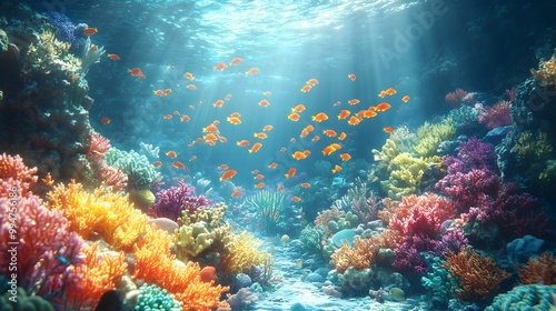 Naklejka premium Colorful fish swimming in serene coral reef pictures under the ocean