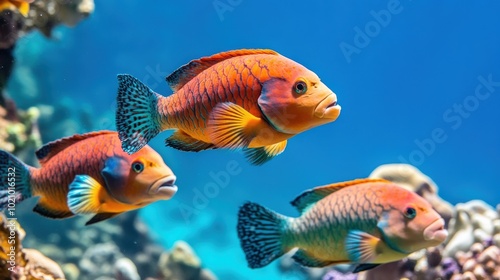Fototapeta premium Colorful Fish Swimming in Vibrant Coral Reef