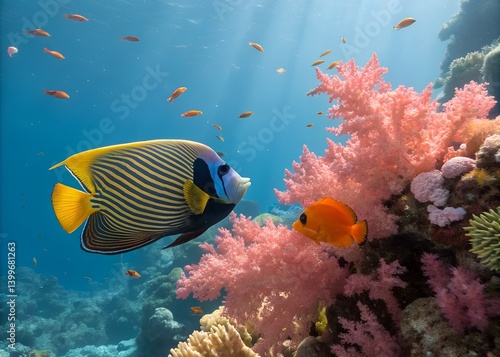 Obraz premium Colorful fish swimming near coral reef