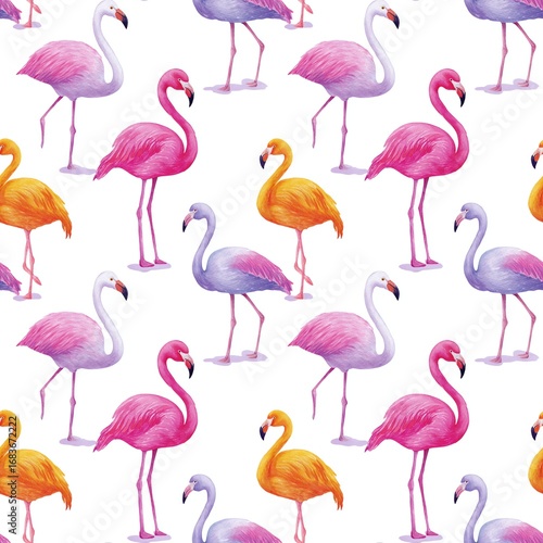 © Sunny_nsk, Fototapeta premium Colorful Flamingo Pattern for Creative Designs, endless seamless texture rapport element