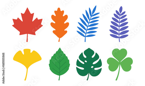 Obraz premium Colorful flat botanical leaf set with diverse shapes for nature design