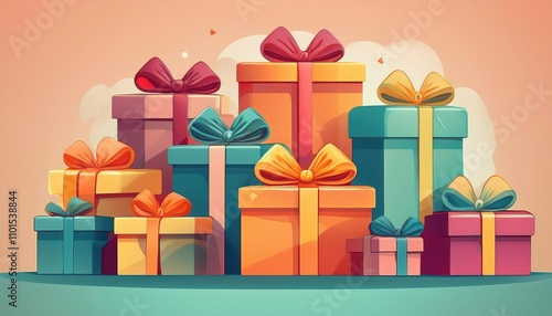 Fototapeta premium Colorful Flat Design Gift Boxes Ribbons