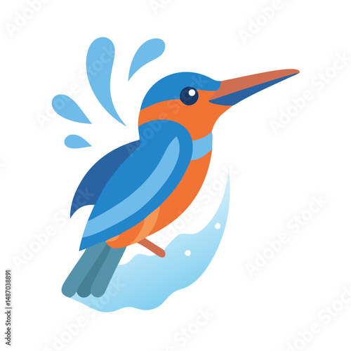 © Sharuzzaman, Obraz premium Colorful flat design kingfisher bird and water illustration