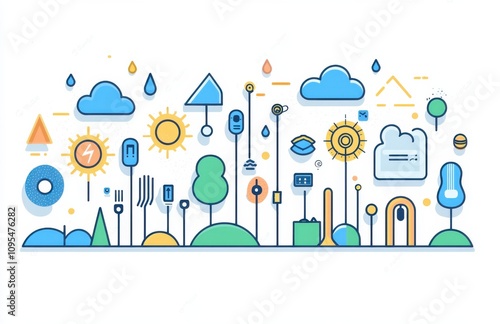 © Georgii, Obraz premium Colorful flat illustration of weather and nature elements