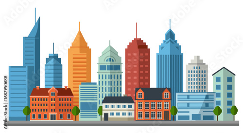 Naklejka premium Colorful flat urban skyline with modern and classic architecture