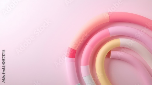 Fototapeta premium Colorful flexible tubes arranged in a curve on a soft pink background.