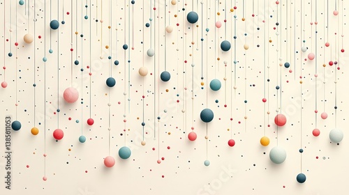 Fototapeta premium Colorful Floating Spheres on Thread in Modern Art Style Decorative Background