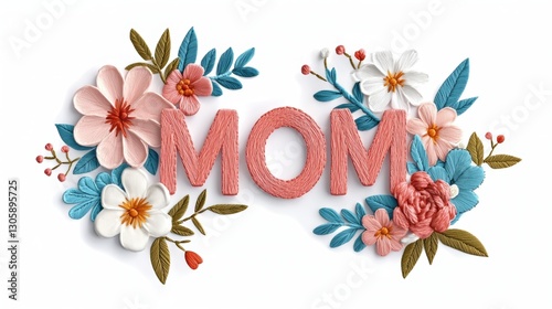 Obraz premium Colorful floral design with the word "MOM" highlighted.