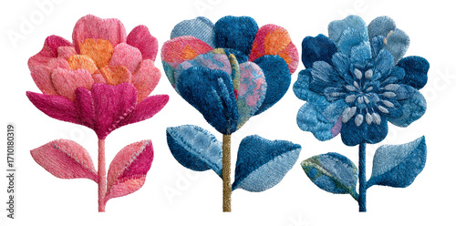 Fototapeta premium Colorful Floral Embroidery Designs on Transparent Background