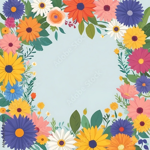 Fototapeta premium Colorful Floral Frame with a Blank Center
