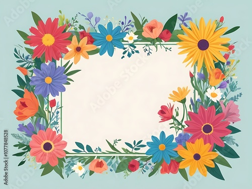 Fototapeta premium Colorful Floral Frame with Blank Center