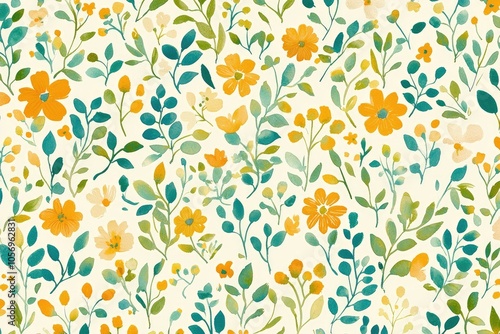 © 6ixpoint6, Obraz premium Colorful floral pattern with leaves on a light background.