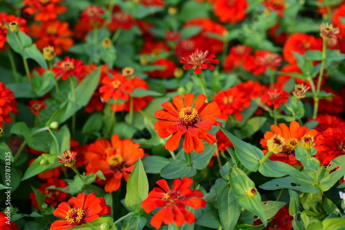 © tharathip, Naklejka premium Colorful flower bed in a park