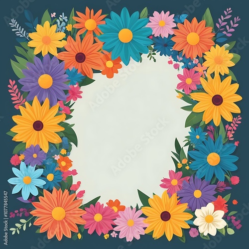 Obraz premium Colorful Flower Border with Empty Center