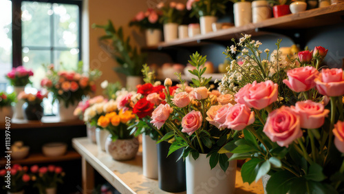 Fototapeta premium Colorful flower bouquet display in a charming florist shop