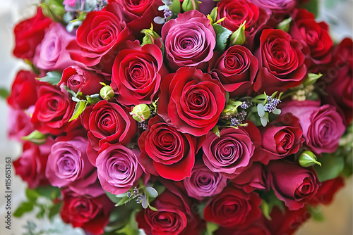 © john, Obraz premium Colorful flower bouquet from red roses for use as background.