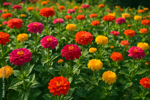 © Kleber, Fototapeta premium Colorful Flower Field with Vibrant Zinnias in Full Bloom