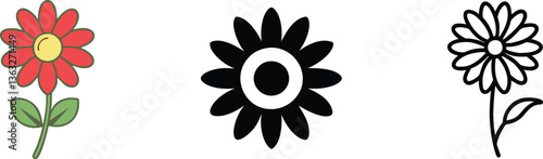 Naklejka premium Colorful Flower Illustrations Red, Black, and Line Art Designs