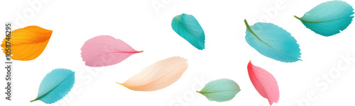 Fototapeta premium Colorful flower petals floating on the wind, isolated on transparent background