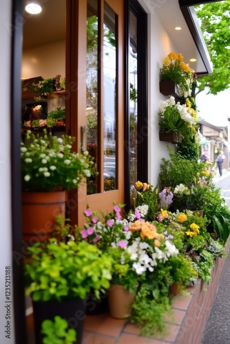 Fototapeta premium Colorful Flower Shop Exterior with Blooming Plants