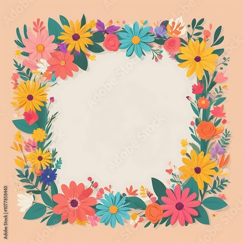 Fototapeta premium Colorful Flower Wreath Surrounding a White Background