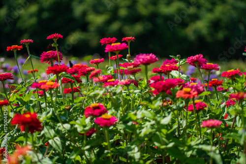 © Maksim Shebeko, Fototapeta premium Colorful flowers bloom beautifully, filling the garden with life and warmth under the sun