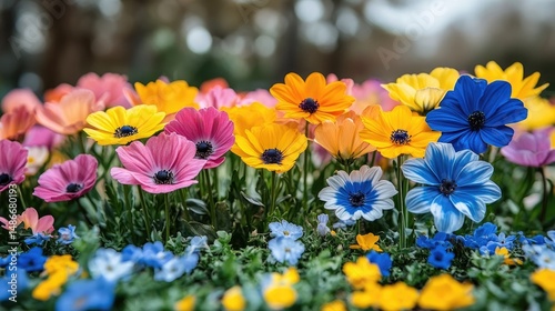 © bade, Fototapeta premium Colorful flowers in spring garden.