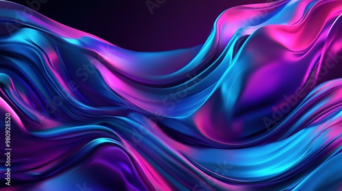 Obraz premium Colorful flowing fabric waves in vibrant shades of purple and blue, creating...