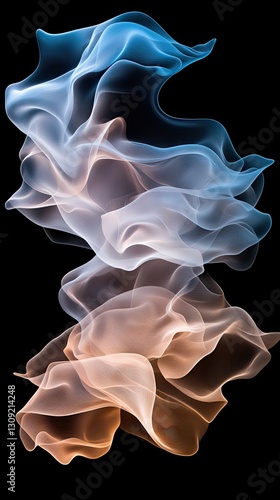 © pvl0707, Fototapeta premium Colorful flowing smoke creating an abstract design against a black background with shades of blue, white, and brown in soft curves