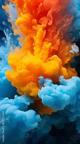 © LeoArtes, Fototapeta premium Colorful Fluid Dripped Paint on Blue Background, Abstract Image, Texture, Pattern Background, Wallpaper, Background, Cover and Screen of Cell Phone, Smartphone, Computer, Laptop, Format 9:16 and 16:9