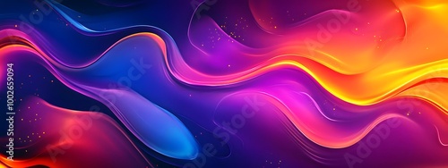 © Lucija, Naklejka premium Colorful fluid shapes on a dark background, with glowing edges, flowing and elegant composition