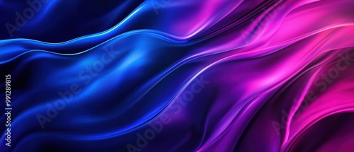 Fototapeta premium Colorful fluid waves in blue and pink, creating a smooth abstract background.