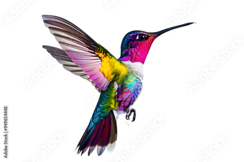 Obraz premium Colorful flying hummingbird isolated on transparent background
