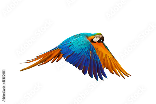 © Passakorn, Fototapeta premium Colorful flying parrot isolated on transparent background.