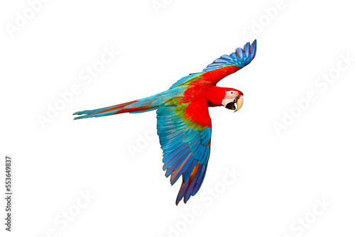 © Passakorn, Fototapeta premium Colorful flying parrot isolated on transparent background.