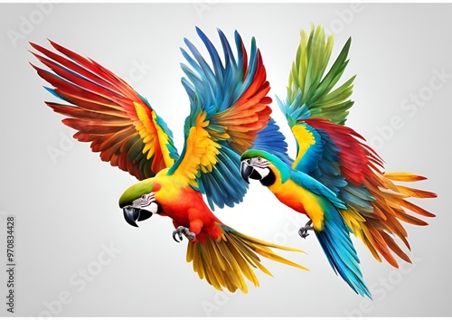 © Hai, Fototapeta premium Colorful flying parrot isolated on white.