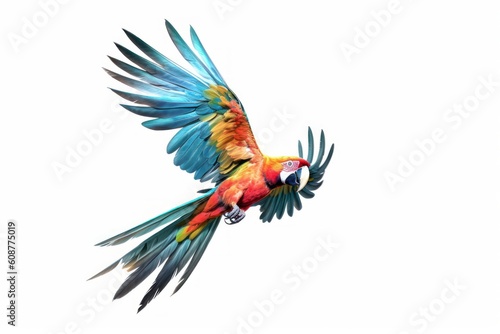 Fototapeta premium Colorful Flying Parrot Isolated on White background. Generative AI